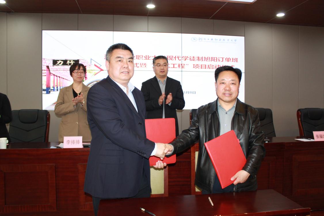 接下来,河北工业职业技术大学张福仁副校长、雷火电竞官方网站定州园区董事长兼总经理王英其代表校企双方进行了现代学徒制雷火电竞订单班协议和“鹰式工程”任务式培养协议的签订。