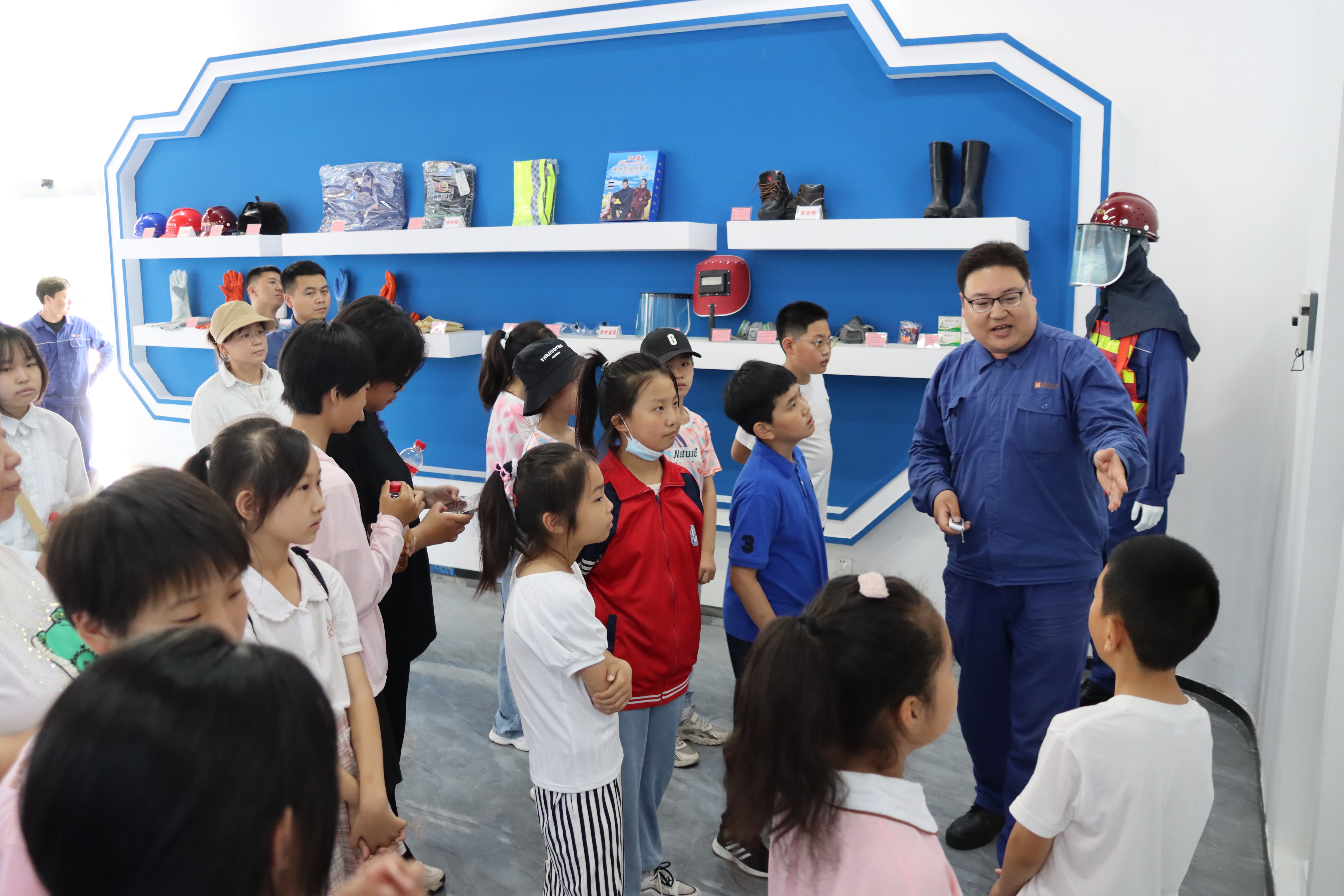 在园区干净整洁的焦炉炉顶,学生们及部分其他参观人员饶有兴致地换上了工人们日常穿戴的劳保服、劳保鞋和安全帽,“全副武装”亲身体验生产场景。虽然只是短短的几分钟,但每一个体验者都已是大汗淋漓,纷纷感叹在炎炎夏日一线工人坚守炉顶巡检的不易,更是佩服在如此条件下工人们通过长期不懈的精细化管控及努力劳作,将最不易清理的焦炉炉顶环境维护得这般整洁。