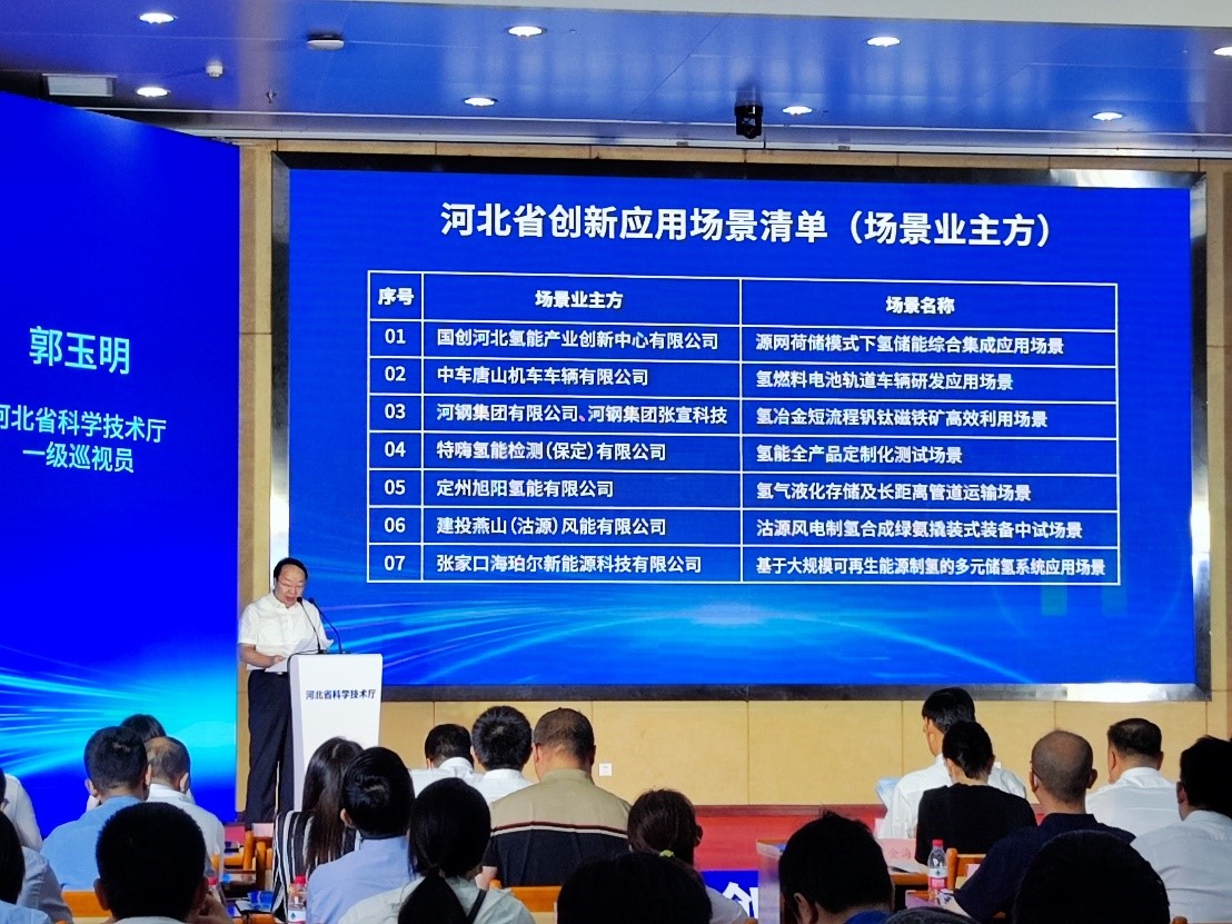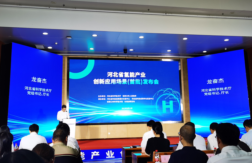 发布会开始,河北省科技厅厅长龙奋杰做开幕致辞。龙奋杰肯定了近十年来河北省氢能产业的迅速发展,介绍了河北省发展氢能产业的地理与政策优势,并以此大会为契机,寻求社会各界多方面合作,继续推进河北省氢能产业发展,助力国家“双碳”目标的战略实施。随后,河北省科技厅一级巡视员郭玉明代表省科技厅发布《河北省氢能产业首批创新应用场景清单》。