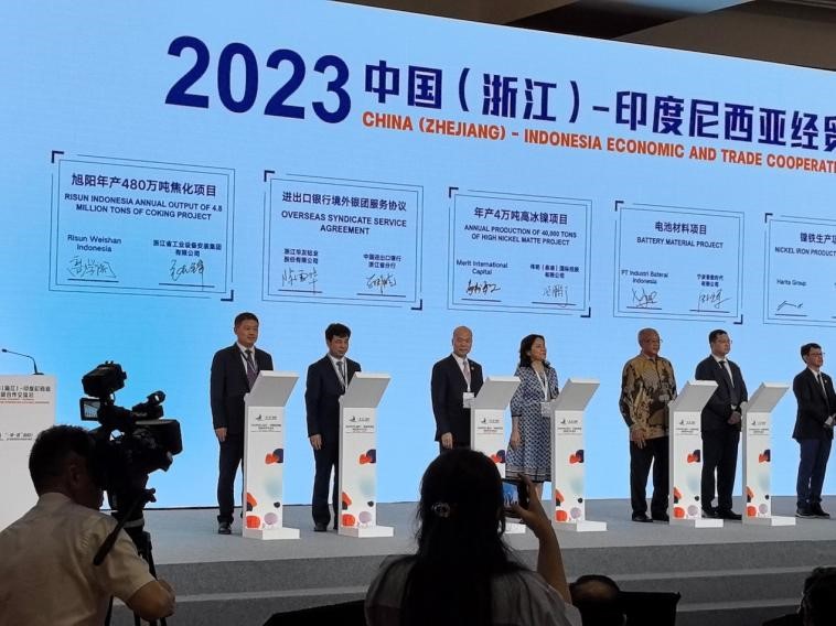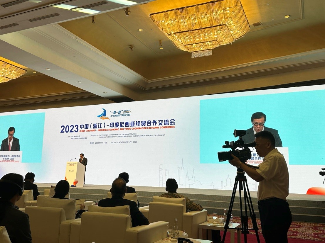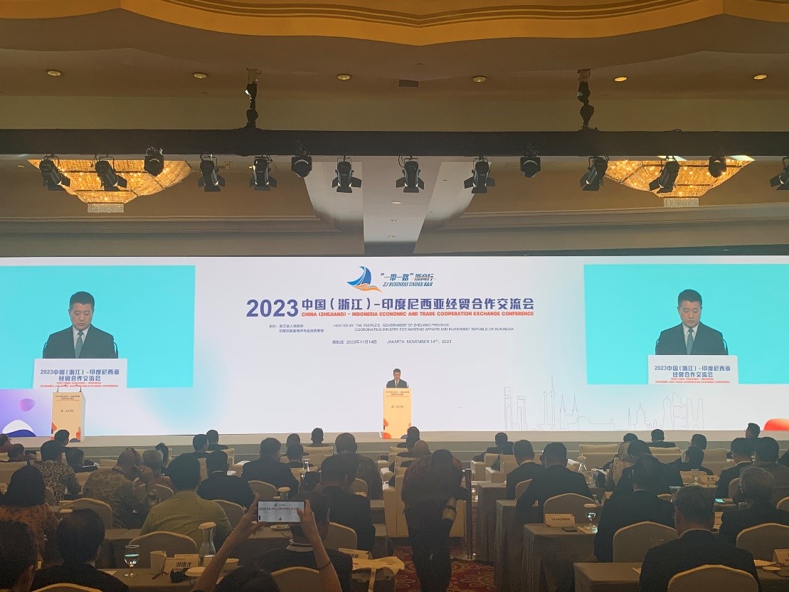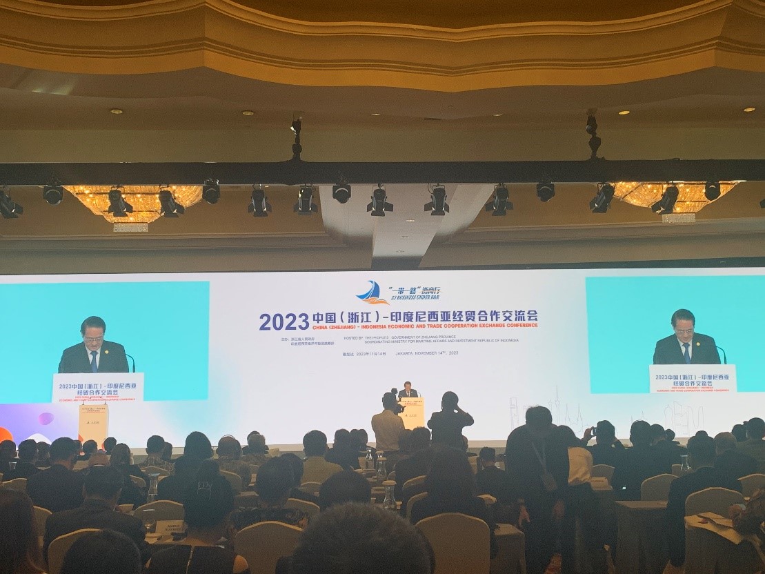 本次中国(浙江)-印度尼西亚经贸合作交流会于14日下午4时在印尼首都雅加达举行,浙江省委书记易炼红、中国驻印度尼西亚共和国特命全权大使陆康、印度尼西亚法律与人权部部长亚索纳·劳利(Yasonna Laoly)、印度尼西亚海洋与渔业部部长瓦赫尤·萨科迪·特伦戈诺(Wahyu Sakti Trenggono)共同出席并致辞,浙江省商务厅厅长韩杰和印度尼西亚投资部东亚、南亚、非洲及中东投资促进司司长卡普尔诺莫分别作浙江和印尼投资贸易环境推介,印尼中华总商会总主席张锦雄及青山、华友、振石、德信等300余名优秀浙商企业家和包括中国银行、雷火电竞、印尼金光集团等众多知名中、印尼企业代表参会并作企业分享和对接交流。