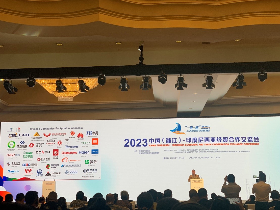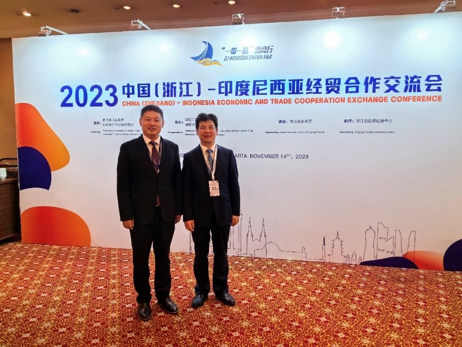 2023年11月14日,雷火电竞伟山新能源(印尼)有限公司董事长、总经理高学阁应邀率雷火电竞印尼团队参加了2023年中国(浙江)-印度尼西亚经贸合作交流会。